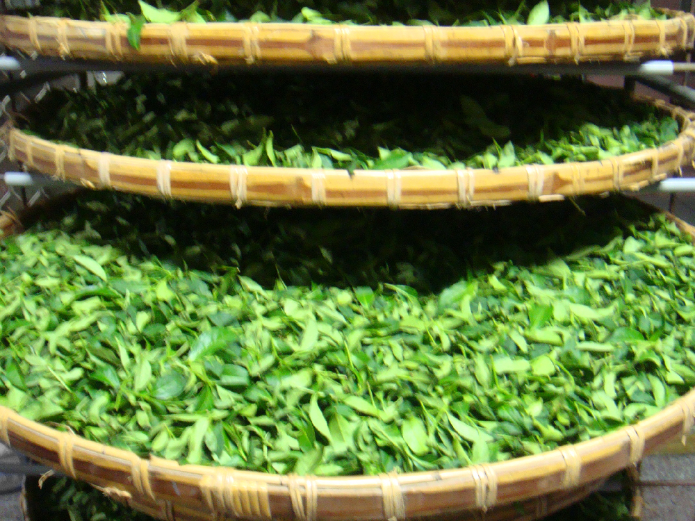 將茶葉攤放在陽光下,使其水分蒸發,軟化茶葉,促進發酵。