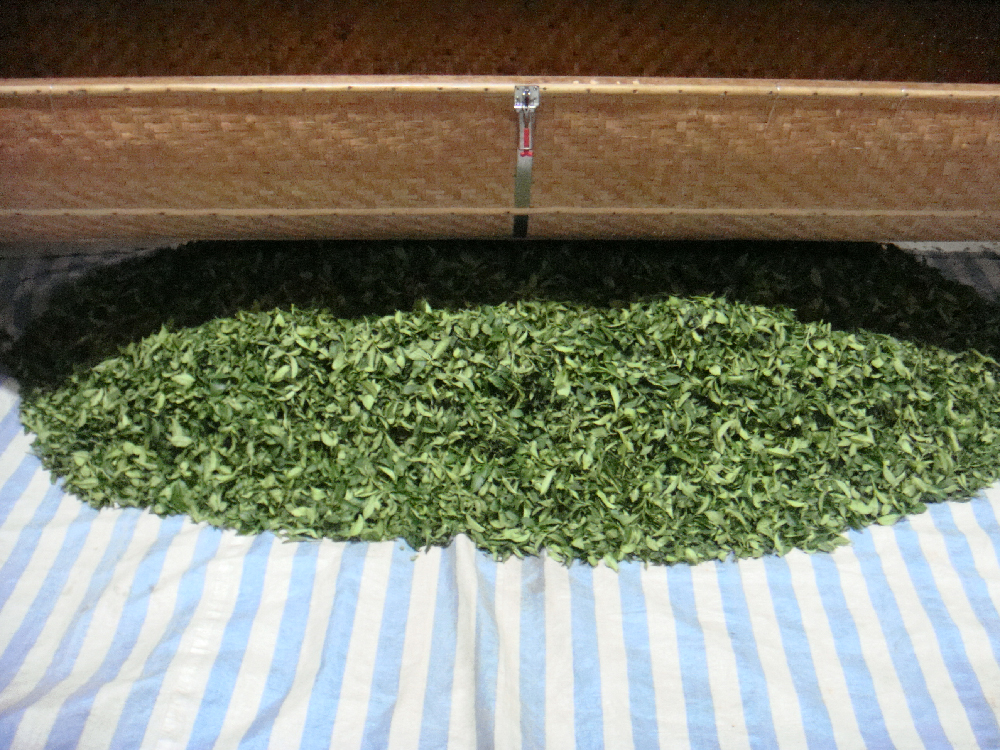 將茶葉移至室內,繼續萎凋,控制溫度濕度,使茶葉均勻發酵。